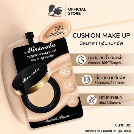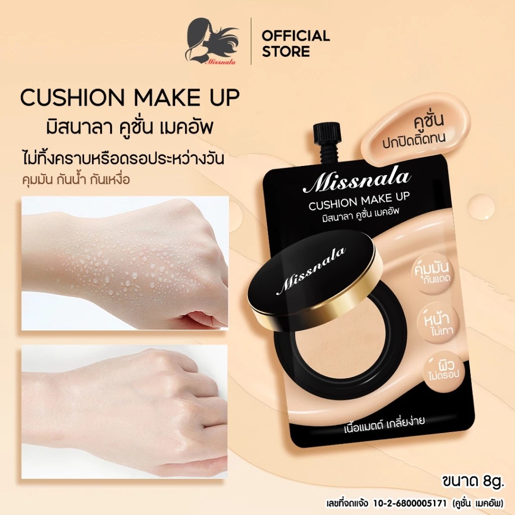 UP มิสนาลา คูชั่น เมคอัพ เนื้อแมตต์ สัมผัสบางเบา เกลี่ยง่าย ช่วยปกปิดริ้วรอยและคุมมัน