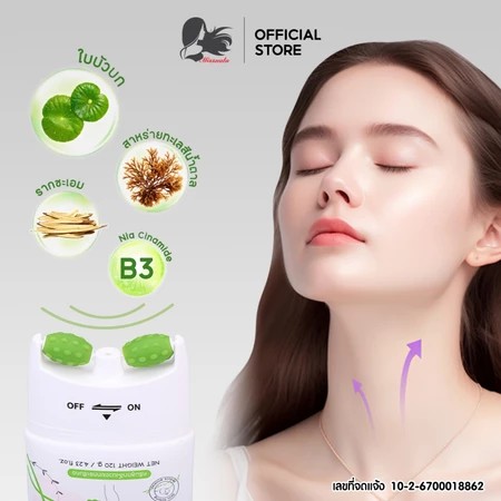 - ทาบริเวณลำคอหรือใต้คาง และใช้ลูกกลิ้งนวดเบาๆ