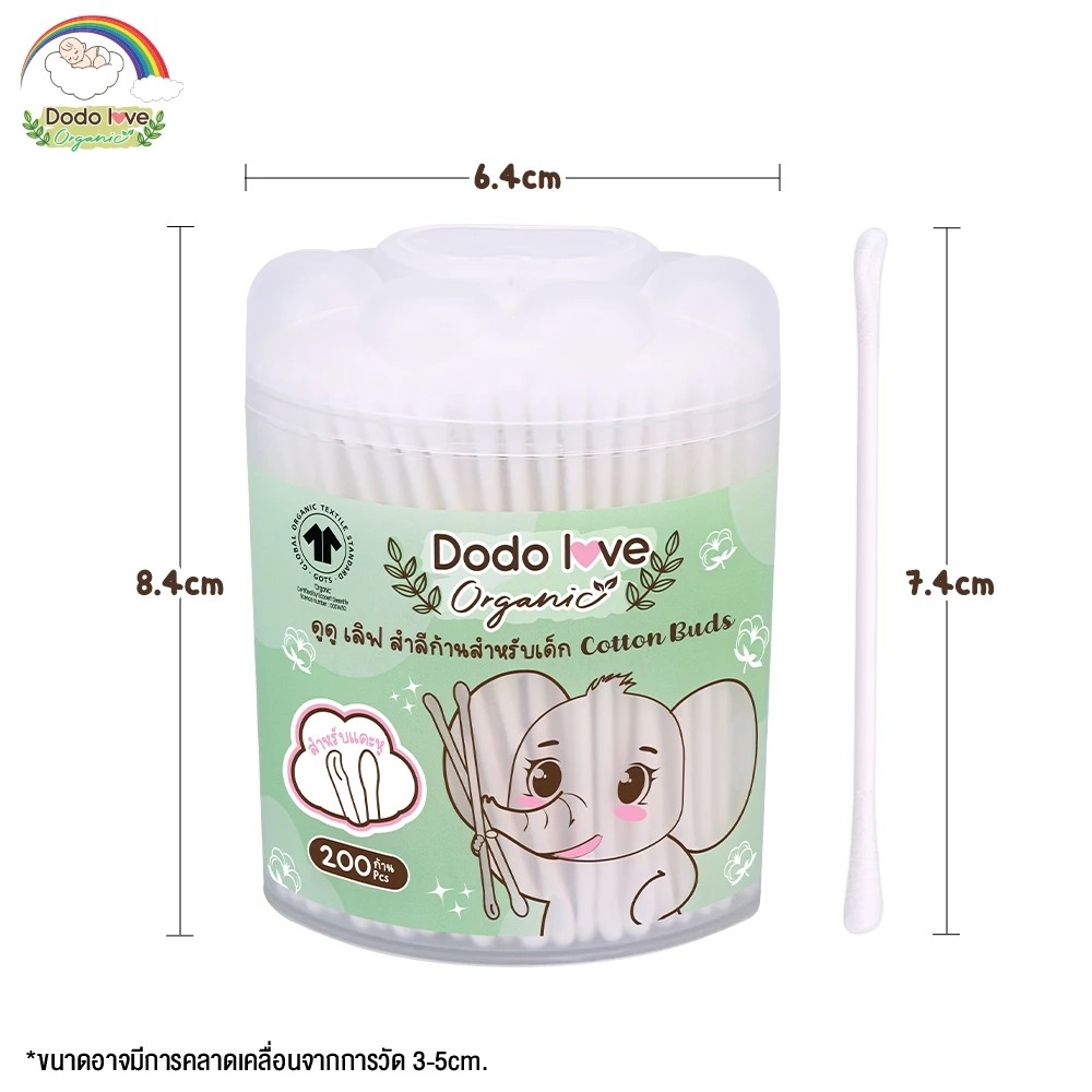 DODOLOVE Organic สำลีก้านกระดาษ สำลีก้านแคะหู ออร์แกนิค หัวเล็ก 200 ก้าน ใช้ได้ตั้งแต่เด็กแรกเกิด