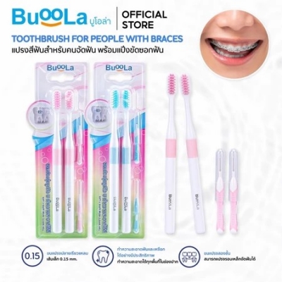 BUOOLA แปรงสีฟัน สำหรับคนจัดฟัน พร้อมแปรงขัดซอกฟัน ขนแปรงสองชั้น - แปรงฟัน ช่องปาก