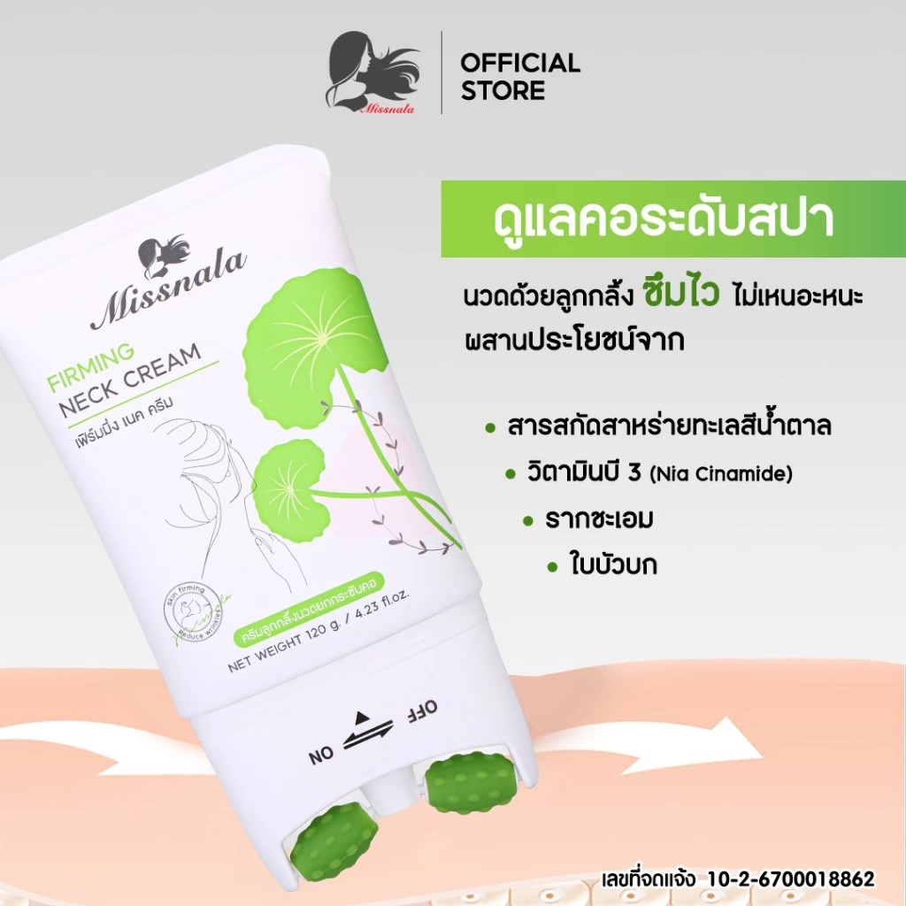 ครีมทาลำคอ Missnala Firming Neck Cream พร้อมลูกกลิ้งสำหรับนวด บริเวณลำคอ และใต้คาง