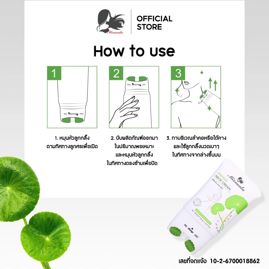 มิสนาลา เฟิร์มมิ่ง เนค ครีมทาคอ พร้อมลูกกลิ้งสำหรับนวด บริเวณลำคอ และใต้คาง