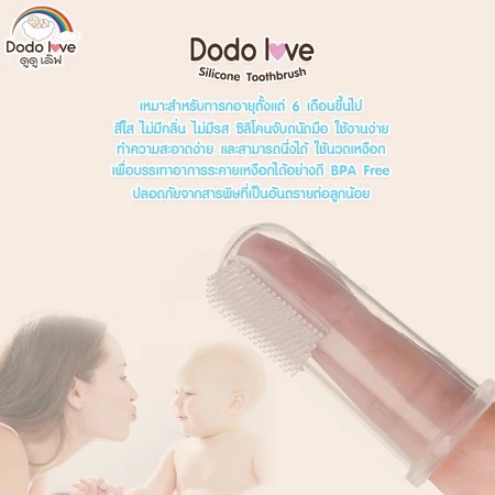 DODOLOVE แปรงซิลิโคนแบบสวมนิ้วสำหรับเด็ก ด้ามจับถนัดมือ ใช้งานง่าย ขนแปรงมีความอ่อนนุ่ม ไม่เป็นอันตรายต่อลูกน้อย ผลิตจากวัสดุคุณภาพดี ปราศจากสาร BPA ไร้สารตกค้าง
