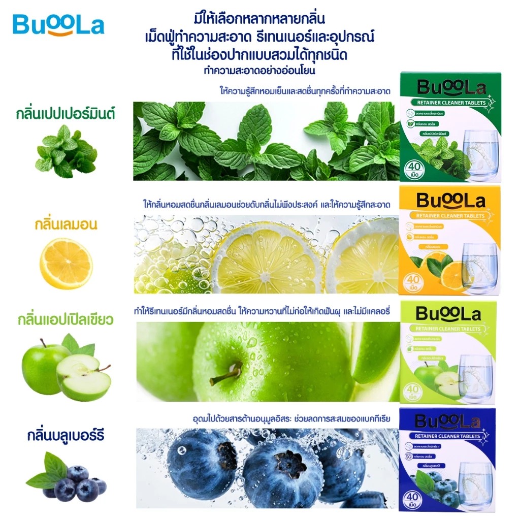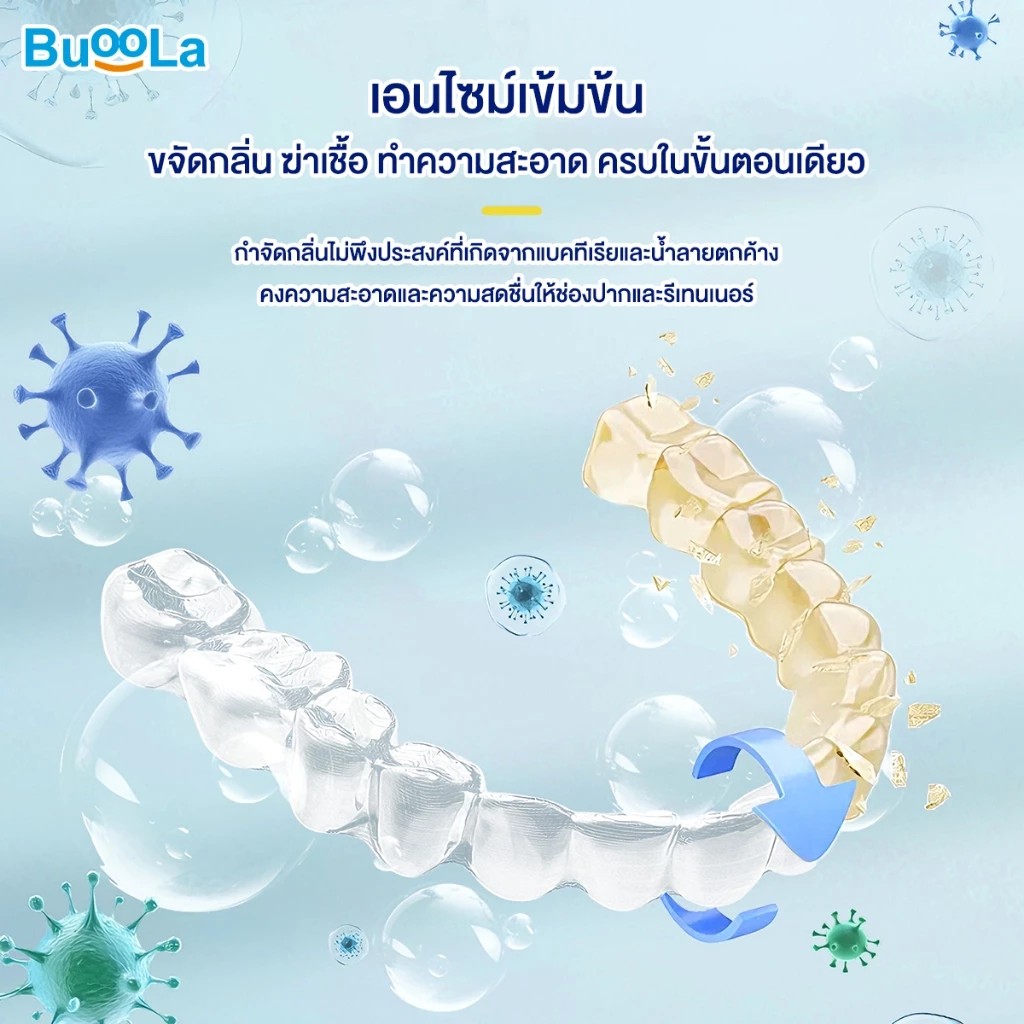 บูโอล่า รีเทนเนอร์ คลีนเนอร์ แท็บเล็ตส์ เม็ดฟู่ทำความสะอาดอุปกรณ์ในช่องปากแบบสวมได้