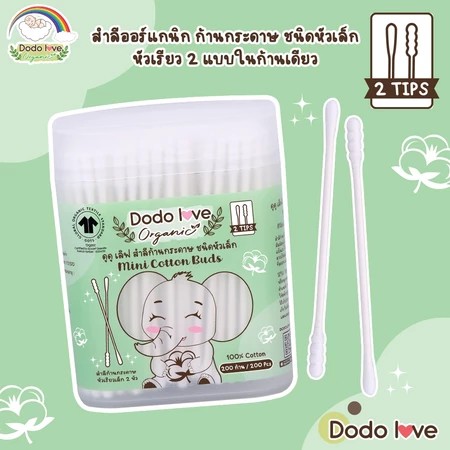 DODOLOVE Organic สำลีก้านกระดาษ สำลีก้านแคะหู ออร์แกนิค หัวเล็ก 200 ก้าน ใช้ได้ตั้งแต่เด็กแรกเกิด
